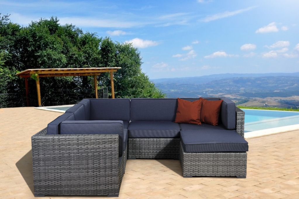 Atlantic Hampton 6 pc Wicker Patio Seating Set Grey Cushions Gray