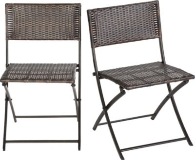 Complete the perfect setting for enjoying a long lazy afternoon in the backyard or on the patio. These allweather folding wicker bistro chairs are perfect for indoor as well as outdoor dining or entertaining. Great for when guests stop by. Allweather resin wicker chairs with bistro charm Durable and easy to maintain Convenient chairs fold for easy storage No assembly required Limited warranty Read more